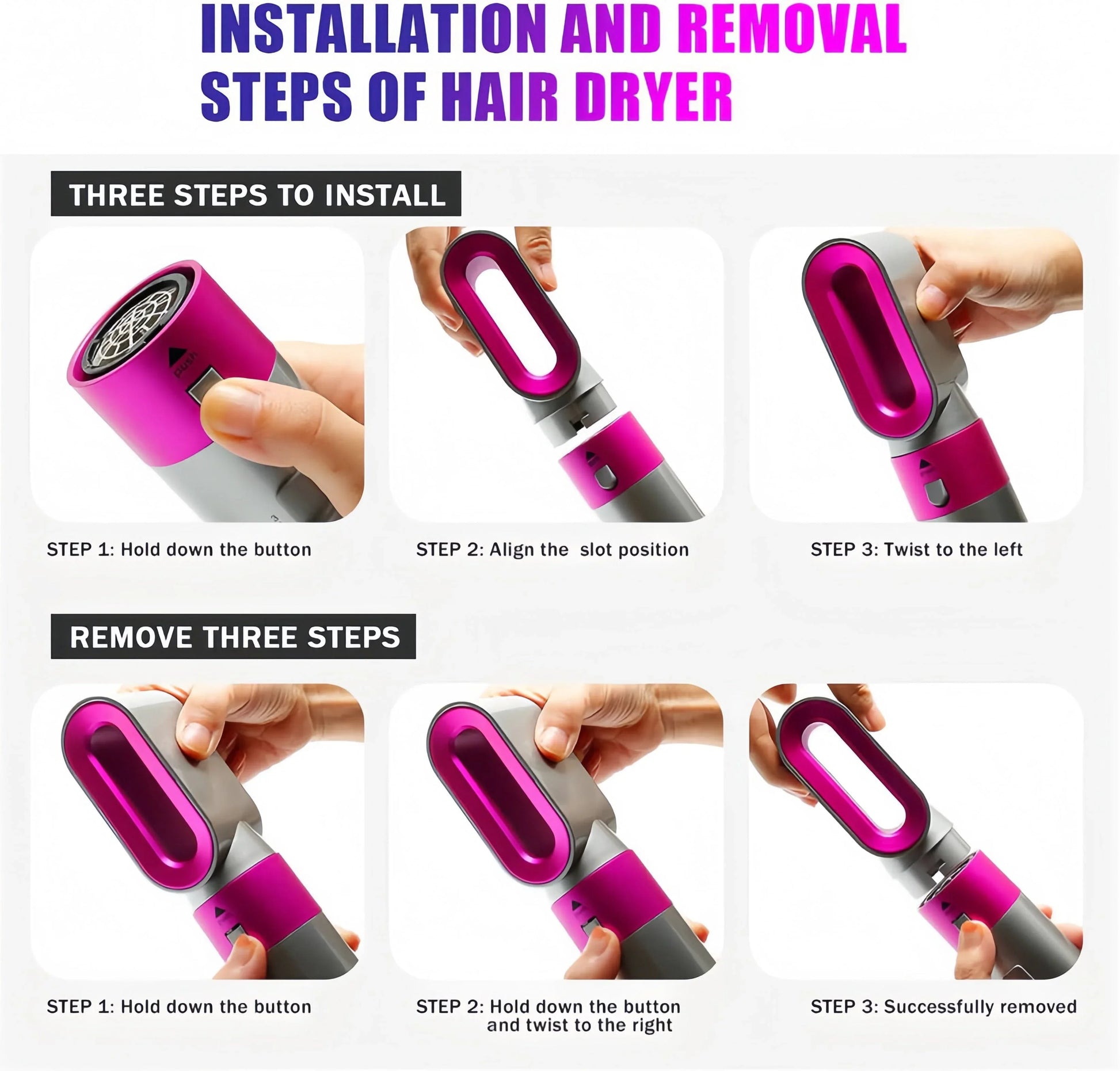 Transform your hair routine with this Professional 5-in-1 Hair Dryer & Hot Air Brush Styler. Featuring detachable high-speed brush heads, it allows you to dry, curl, straighten, volumize, and smooth your hair effortlessly. Designed for quick styling with salon-quality results right at home.
